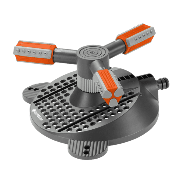 Con el aspersor circular Mambo Comfort de GARDENA, puede regar convenientemente áreas más pequeñas y más grandes. La base robusta garantiza un soporte estable, incluso en una pendiente o en un terreno irregular, y permite el uso móvil del rociador.