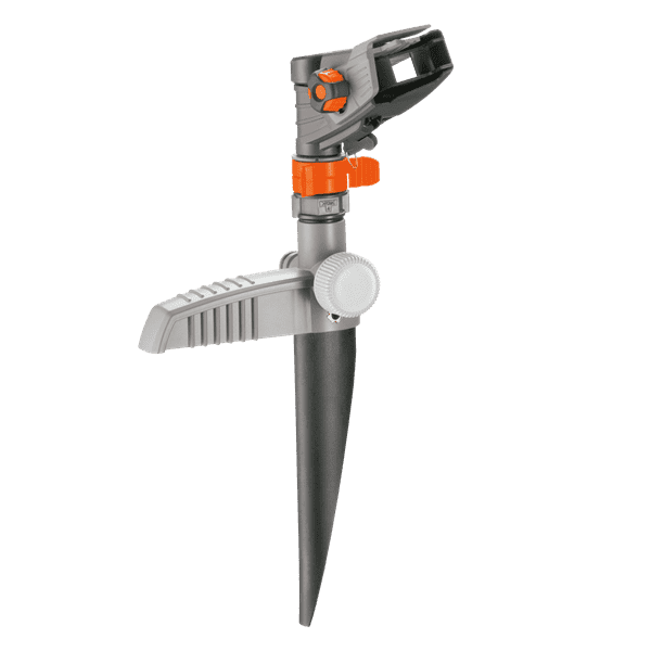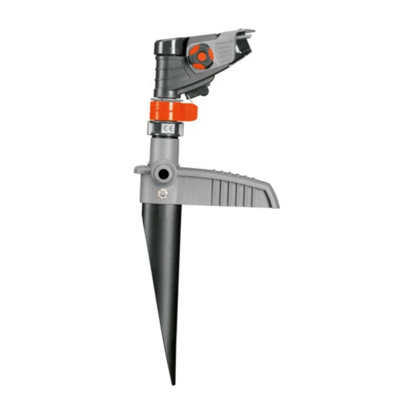 El aspersor de impacto, circular y sectorial tiene un diseño resistente de plástico.