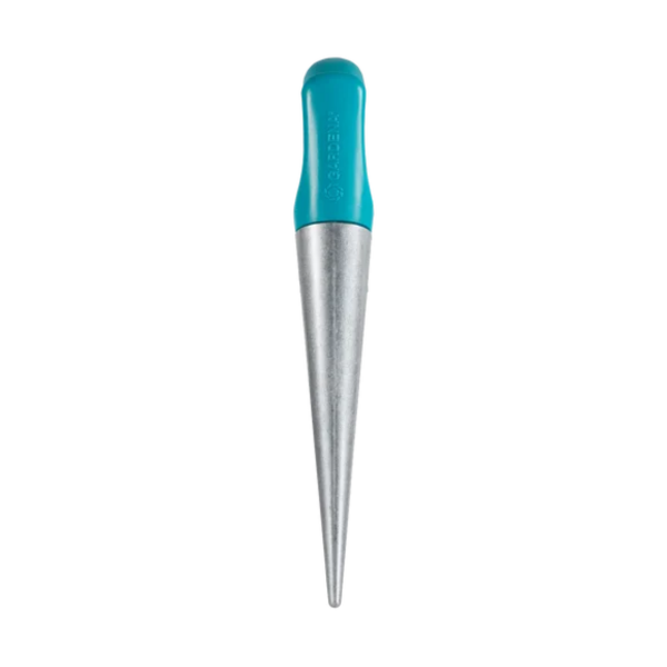 👉🏼 La robusta punta de metal inoxidable está galvanizada y puede penetrar en la tierra hasta a 19,5 cm de profundidad y forma así un agujero para la planta.